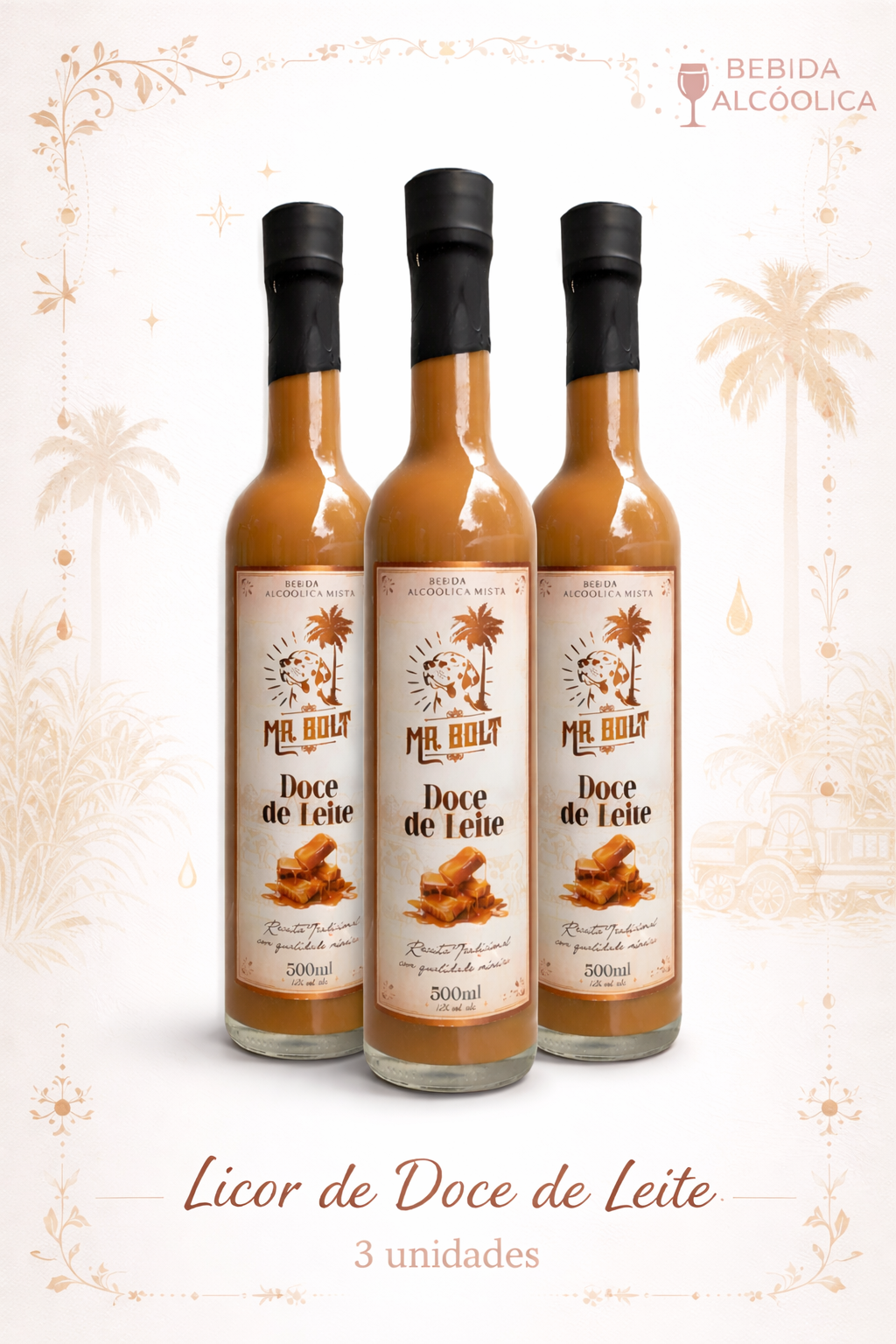 KIT MR. BOLT LICOR DE DOCE DE LEITE 500 ML 3 UNIDADES